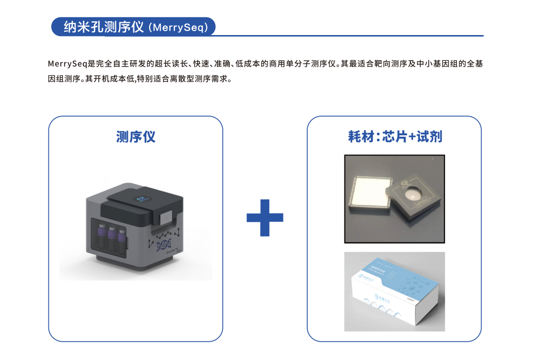 MerrySeq T01 Auto is a fully independently developed commercial single-molecule sequencer with ultra long read length, fast, accurate, and low cost. It is most suitable for targeted sequencing and whole genome sequencing of small and medium-sized genomes. Its low start-up cost is particularly suitable for discrete sequencing needs.