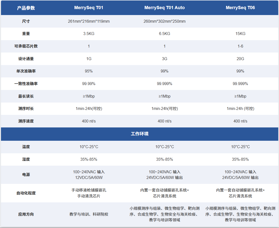 MerrySeq T01 Auto是完全自主研发的超长读长、快速、准确、低成本的商用单分子测序仪。其最适合靶向测序及中小基因组的全基因组测序。其开机成本低,特别适合离散型测序需求。